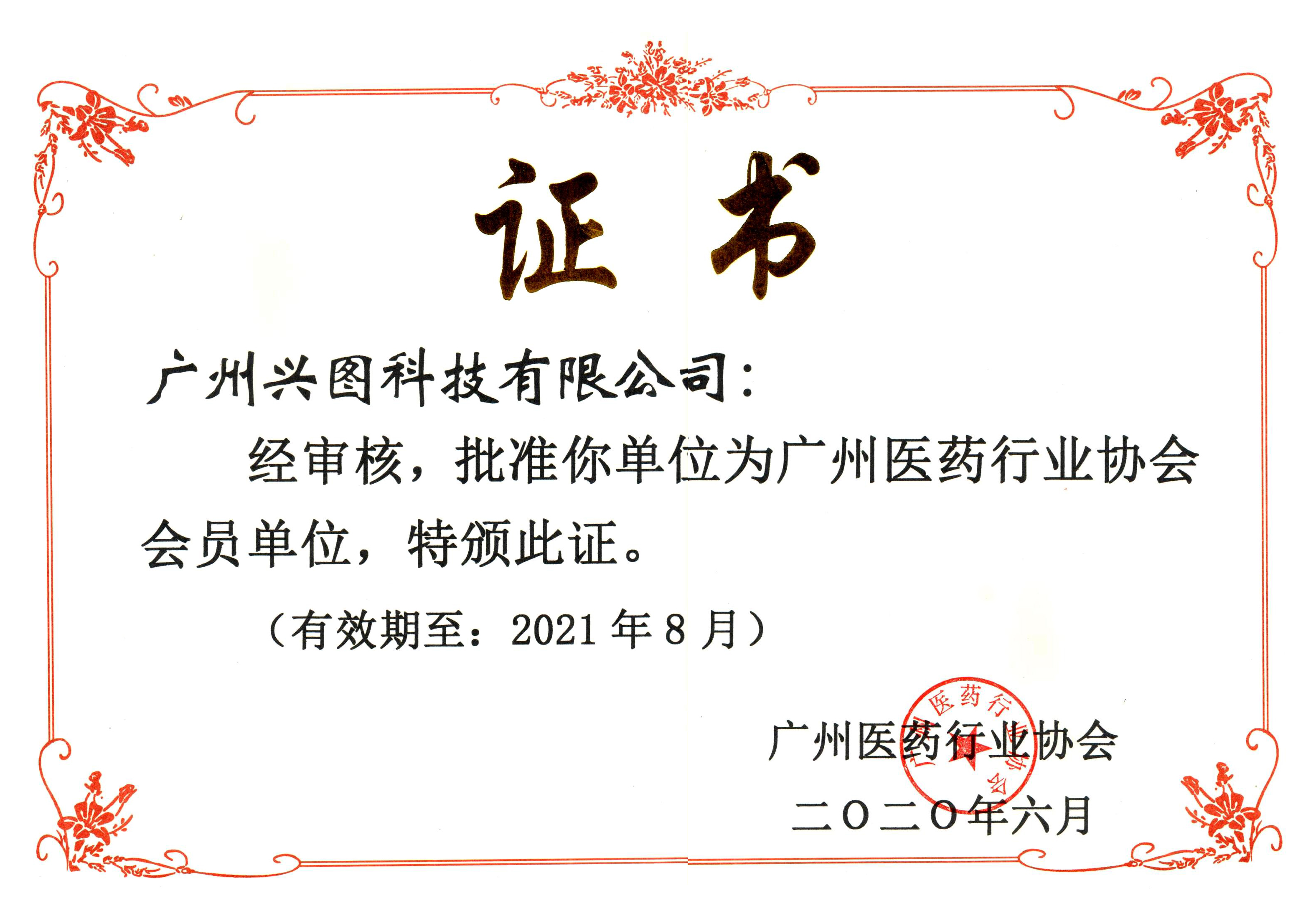 廣州醫(yī)藥行業(yè)協(xié)會(huì)會(huì)員證書